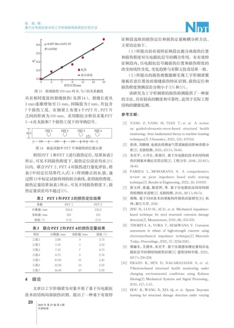 表2 PZT 1和PZT 2的损伤定位结果 [6] 胡陶. 基于EMI技术的梁板构件损伤试验研究[D]. 杭