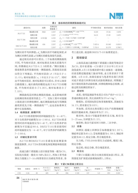为测区的平均回弹值;d 为测区的平均碳化深度;R 考上述比较,故选取DBJ53/T-101标准更适合。