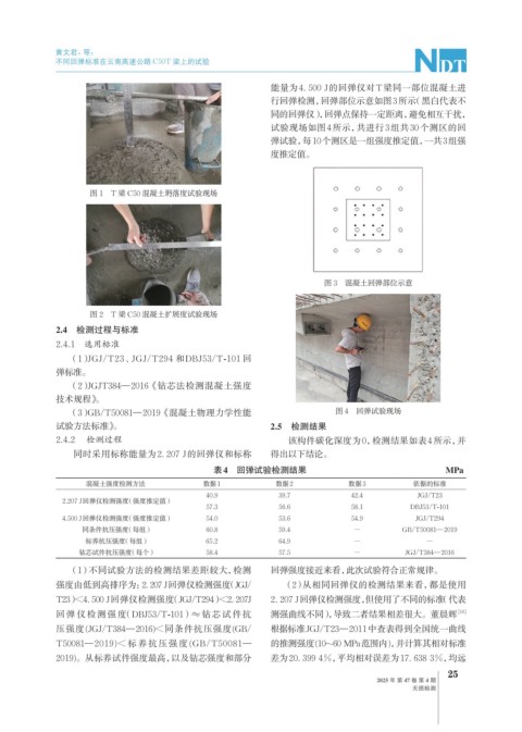 (3)GB/T50081—2019《混凝土物理力学性能 图 4 回弹试验现场