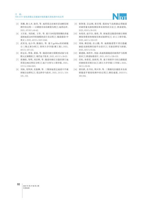 抑制方法研究[J]. 雷达科学与技术,2023,21(2):119- 铁隧道平整度检测中的应用[J].测绘通报,2021(9):