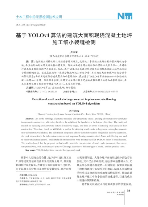 Key words: YOLOv4 algorithm; concrete flooring; small crack