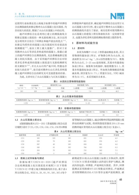 立的超声回弹综合法测强曲线,无法准确地推定混 要物理性能如表1所示。矿物掺合料为火山灰,比