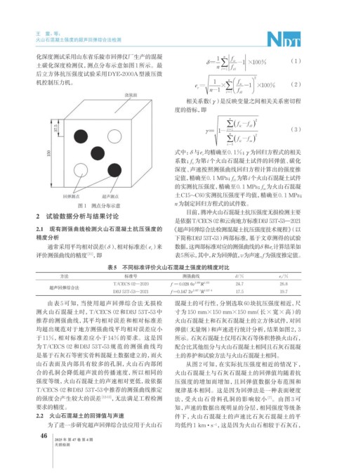 的强度会产生较大的误差 [12-13] ,无法满足工程检测 法,受火山石骨料孔洞的影响较小 。由图 3 可