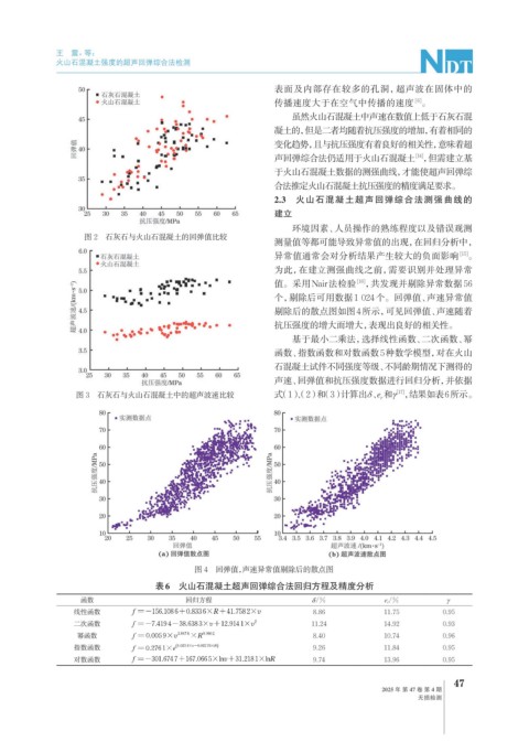 声速、回弹值和抗压强度数据进行回归分析,并依据