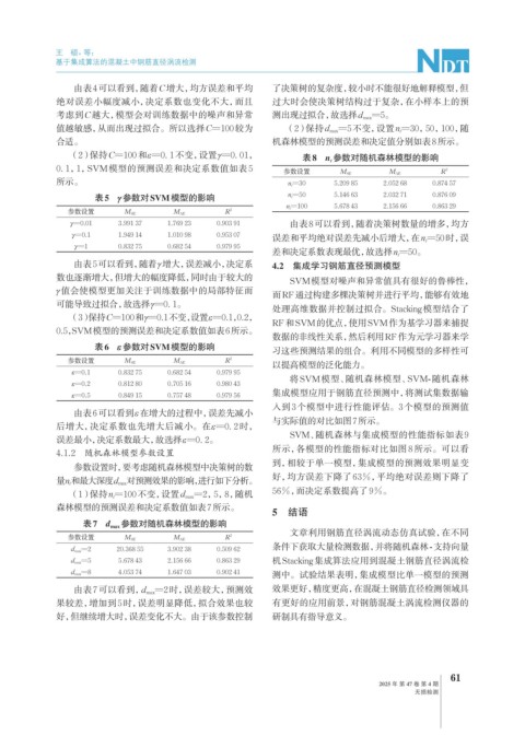 d max =5 5.678 43 2.156 66 0.863 29 机Stacking集成算法应用到混凝土钢筋直径涡流检