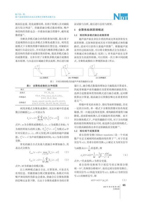 的成像质量。文章介绍了全聚焦多模式融合成像的 面处发生的波形转换,可以得到一共21种不同的模